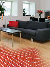 Radiant floor heating for the home can be done efficiently through electric or hydraulic systems. These systems work by running electric cables or hot water tubes under the floor. The heat from the system rises via convection, warming people and objects in the room much like one that would be warmed by the heat of a stove.